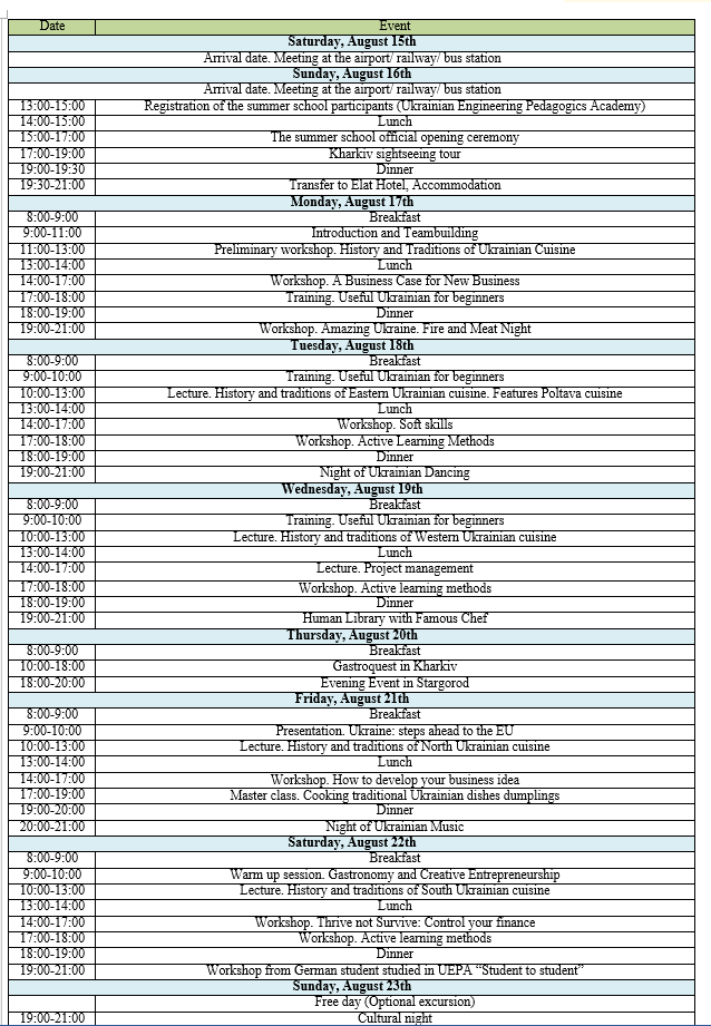 The first module “Tasting Culture: Ukrainian Cuisine & Tradition in Hospitality” is worth 3 credits.
